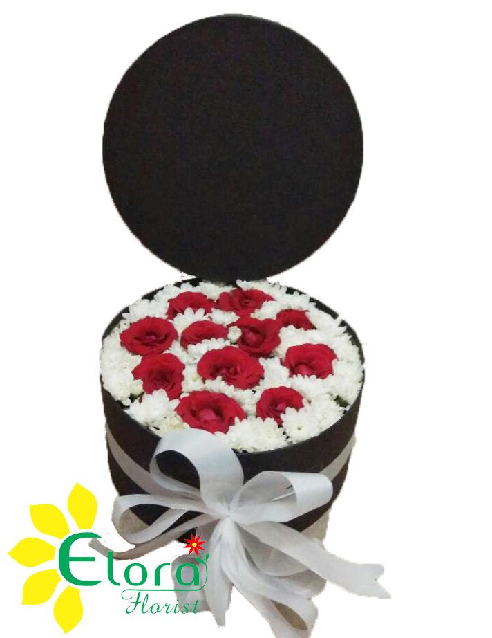 Blom Box Premium Spesial Valentine 9 Tangkai Bunga Mawar Pink 9 Tangkai Bunga Mawar Putih Hortensia dan baby breath