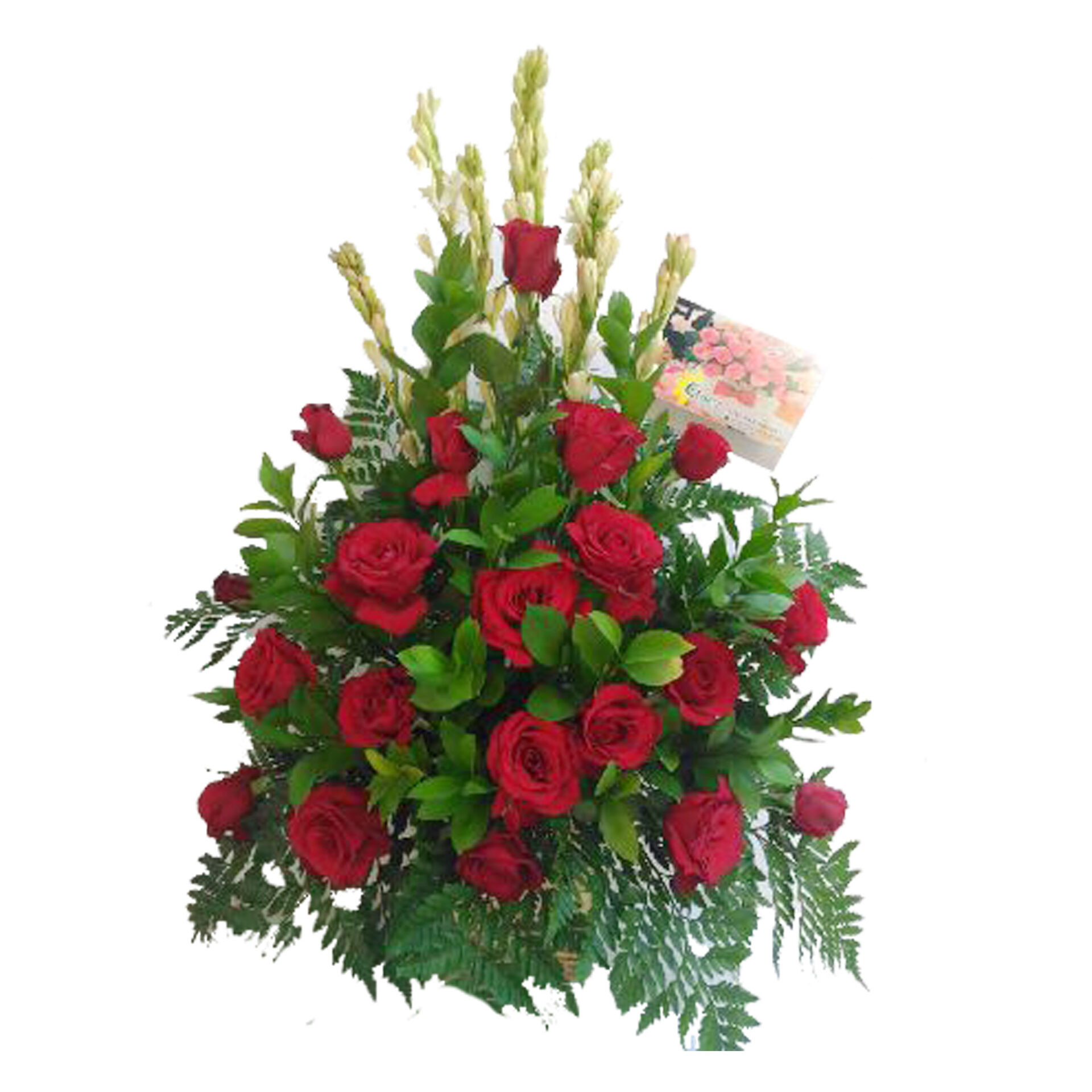 bunga meja dengan bunga mawar merah cocok untuk di jadikan hadiah dan kodo orang tersayang