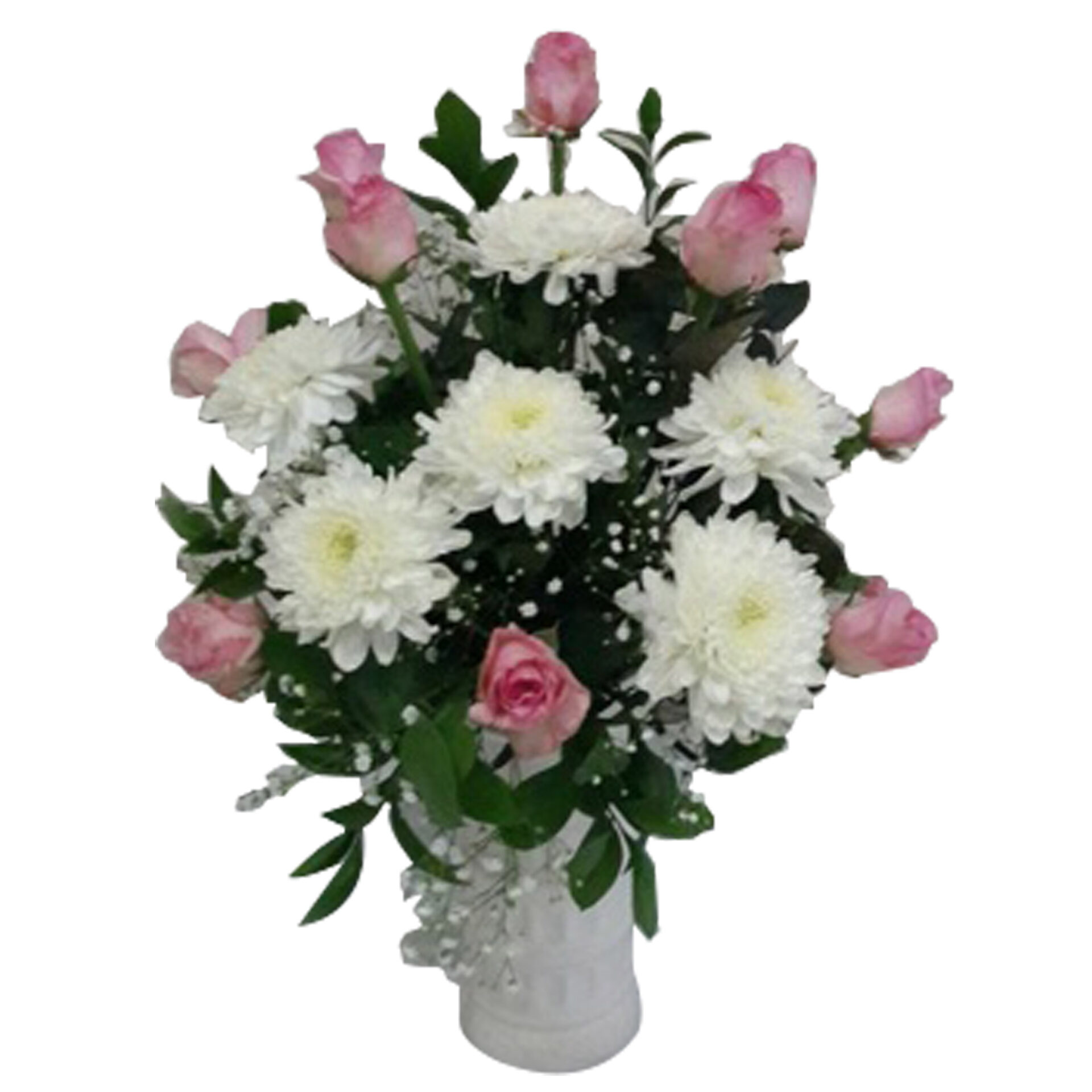 Bunga Meja Mawar Putih-Casablanca-Hortensia Hijau-Snap Dragon-Carnetion-Pikok Ungu