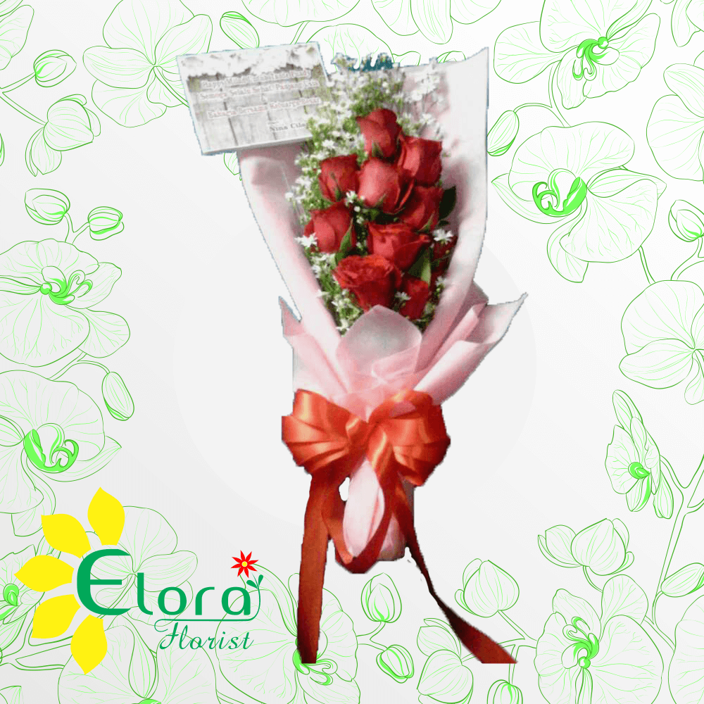 hand bouquet bunga mawar merah dengan 10 tangkai mawar pink