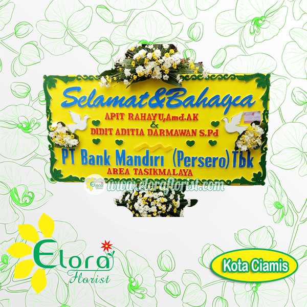 Bunga Papan Pernikahan selamat berbahagia di ciamis ukuran 1,25 x 2m 3 titik bunga