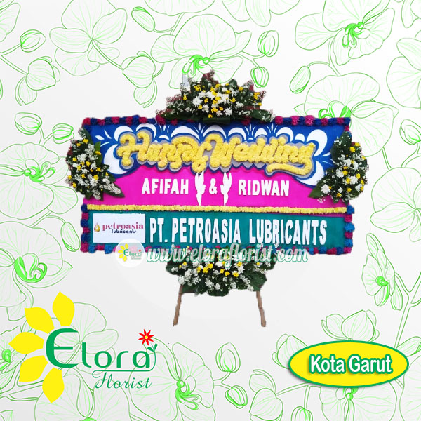 bunga papan selamat berbahagia di garut Ukuran 1 x 2m 4 titik bunga