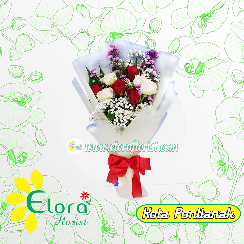 hand bouquet bunga mawar dengan 4 tangkai bunga mawar merah dan 4 tangkai bunga mawar putih