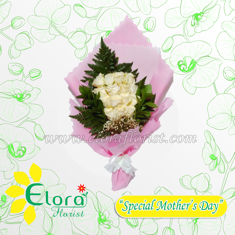handbouquet mawar hari ibu dengan 10 tangkai mawar putih