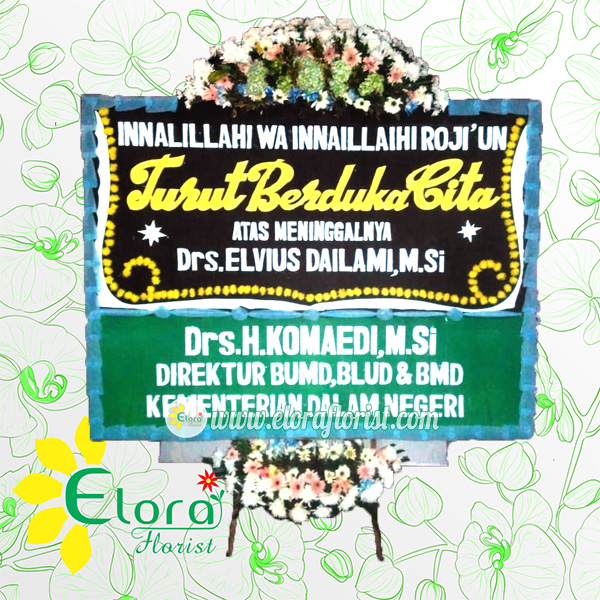 Bunga Papan Duka Cita dengan tulisan arab Inna lillahi wa inna ilaihi raji’un