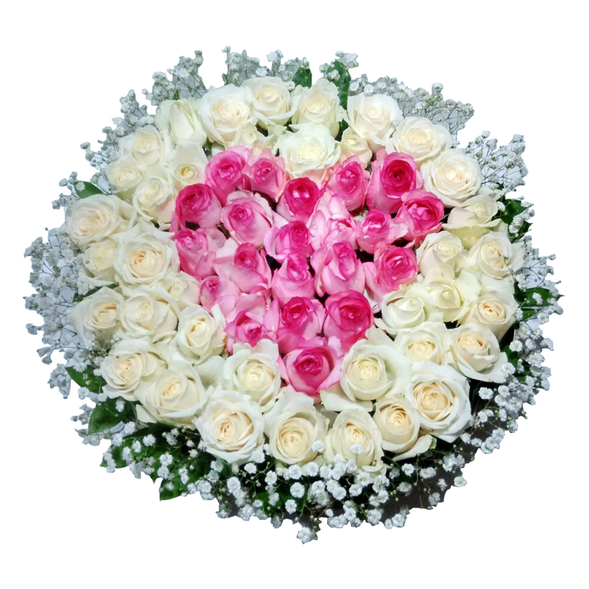Bunga meja motif love dengan menggunakan bunga mawar merah