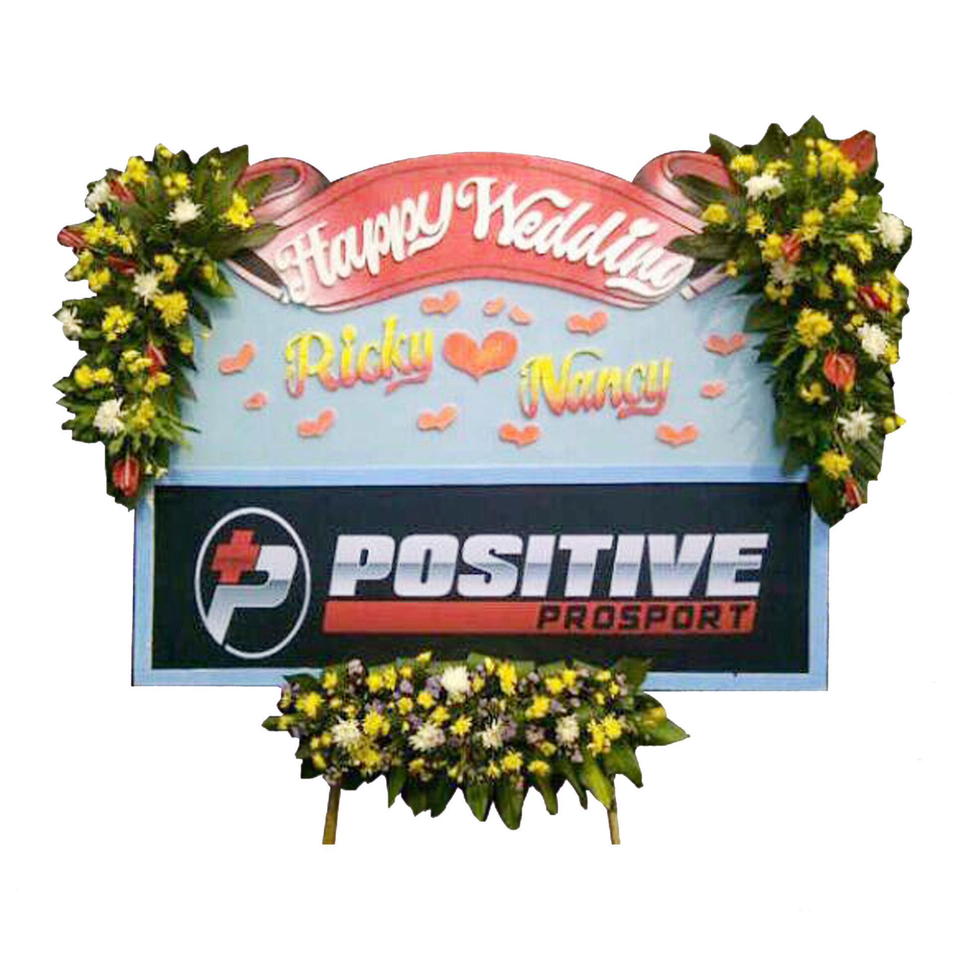 bunga papan happy wedding atau bunga papan pernikahan di surabaya ukuran 1.5m x 2m 2 titik bunga kiri kanan panjang