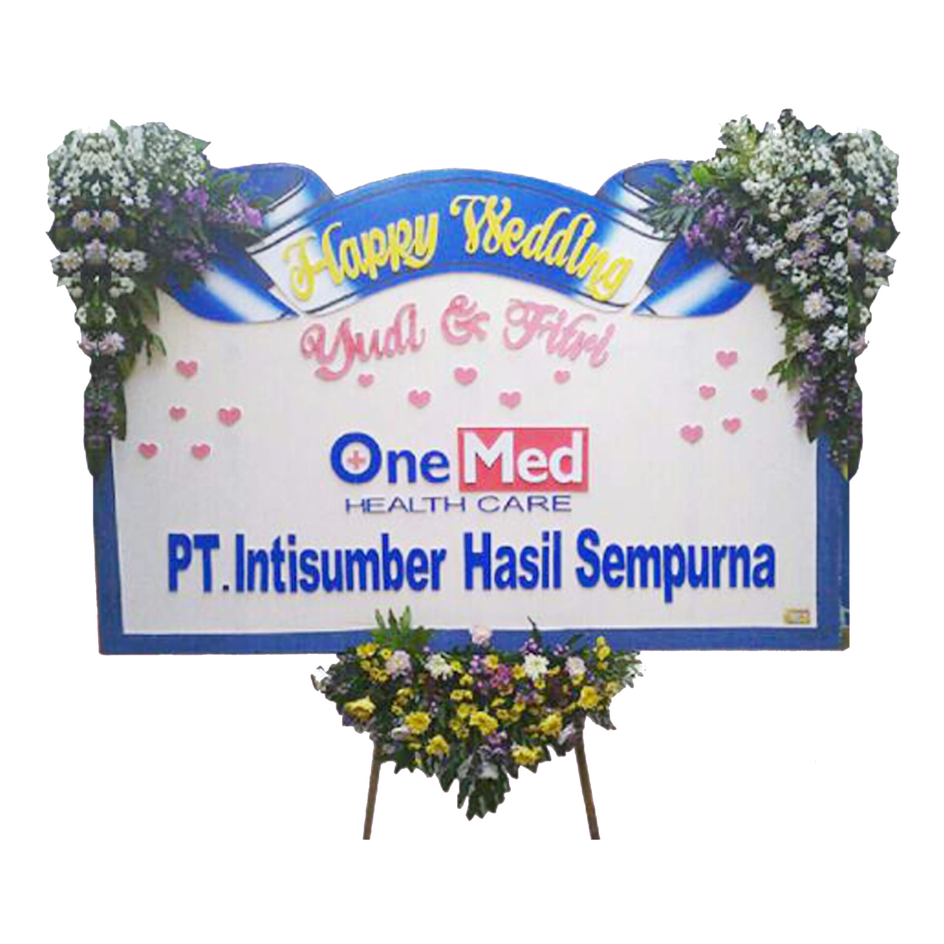 bunga papan happy wedding atau bunga papan pernikahan di surabaya ukuran 1.5m x 2m 2 titik bunga kiri kanan panjang