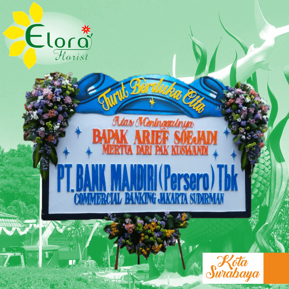 Bunga papan congratulation Surabaya Ukuran 1.5 x 2m 2 titik bunga kiri kanan panjang
